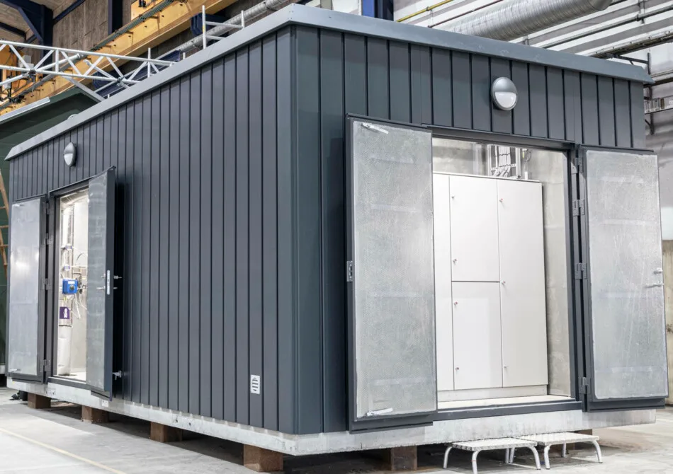 Die Anlage wird im Werk getestet und mit dem CE-Kennzeichen versehen, anschließend wird die Lösung anschlussfertig vor Ort geliefert. Belüftung und Zugänglichkeit werden selbstverständlich berücksichtigt, um einen ordnungsgemäßen Betrieb und eine einfache Wartung zu gewährleisten.
